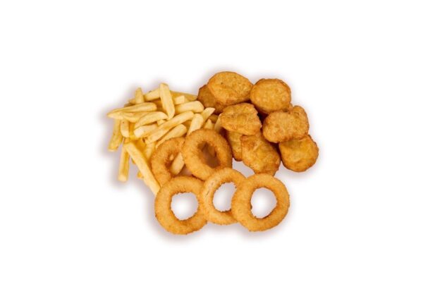 Картофель “фри”, наггетсы 10 шт ,луковые кольца.